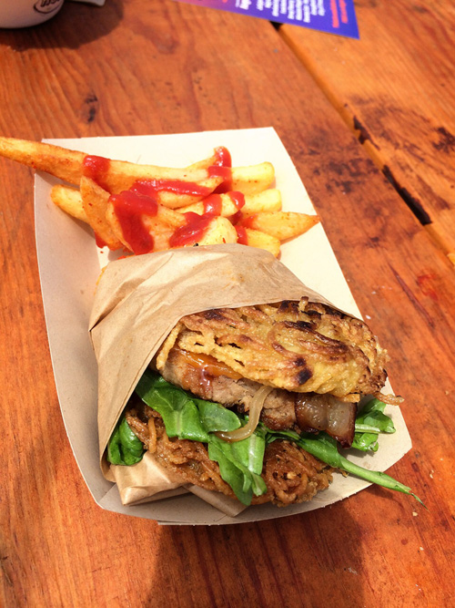 (Pork Belly Burger with Fries, Big Chef Tom’s Belly Burgers)